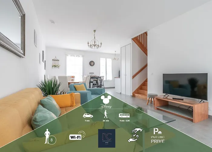 Disneyland Parijs is binnen 25 minuten te voet ervandaan gesitueerd. Geschiedenisliefhebbers zullen genieten van een bezoek aan Le Château de la Belle au Bois Dormant, binnen 10 minuten met de auto. De villa is binnen 2 km van Space Mountain gesitueerd.
